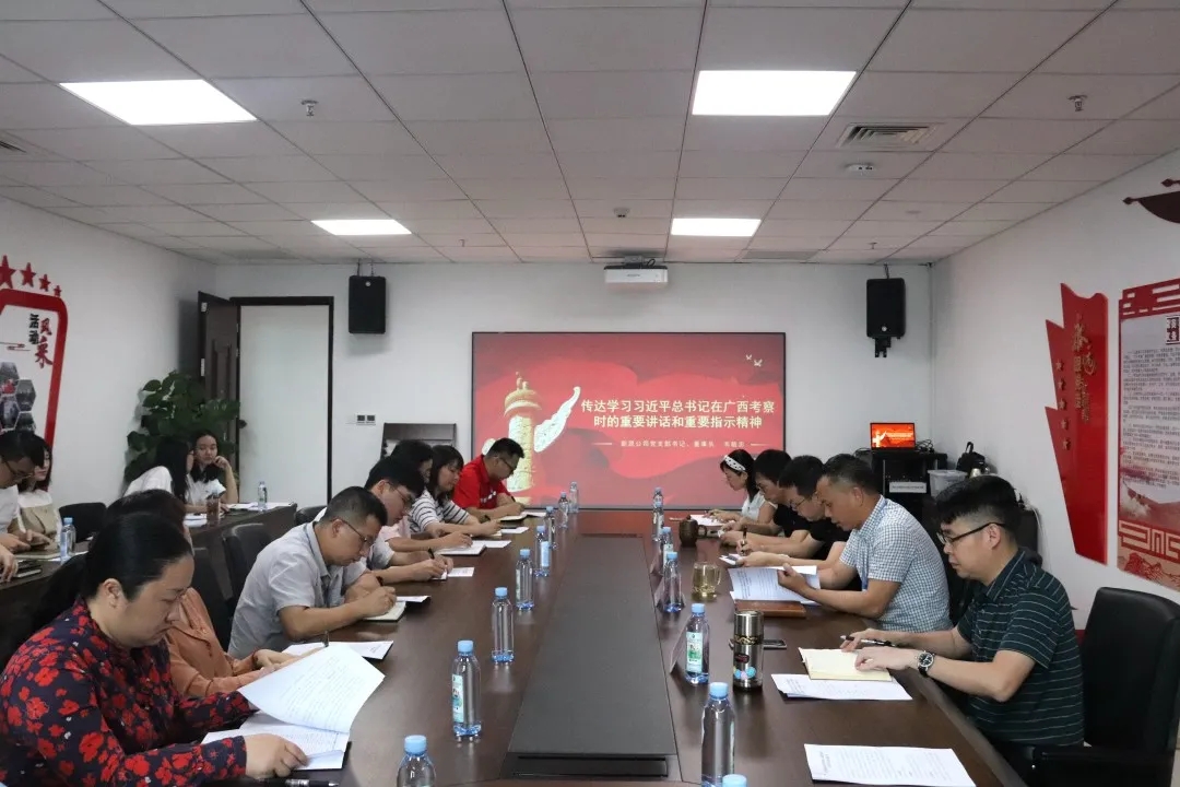 交流研討會分為“精華解讀”和“分享交研”兩大環(huán)節(jié)。在“精華解讀”環(huán)節(jié)中,韋敏忠董事長傳達(dá)學(xué)習(xí)了習(xí)近平總書記在廣西考察時的重要講話和重要指示精神,帶領(lǐng)大家集體觀看黨史教育視頻《革命理想高于天》,從習(xí)近平總書記的指示精神及黨的百年偉大奮斗歷程中汲取繼續(xù)前進(jìn)的智慧和力量。