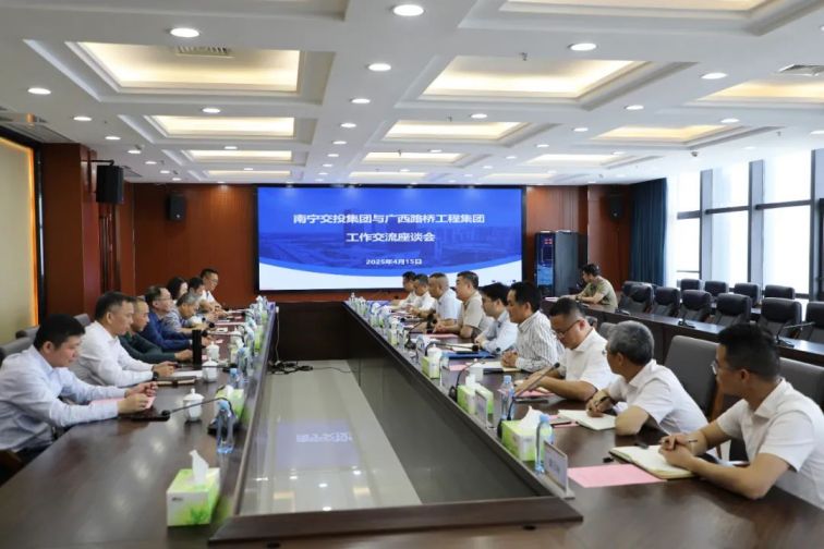 4月15日,廣西路橋工程集團黨委副書記、副董事長、總經(jīng)理李軍帶隊到南寧交投集團開展工作座談。南寧交投集團黨委書記、董事長曹壯,副總經(jīng)理馬衛(wèi)然參加座談。