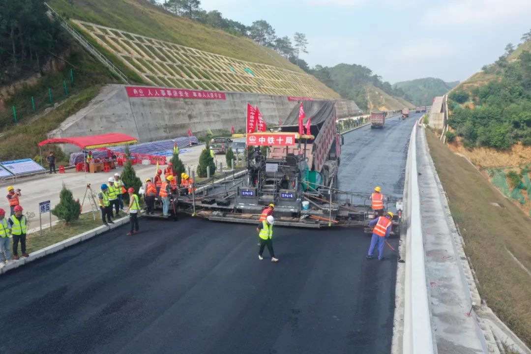 上橫高速項目完成AC-10F瀝青混凝土功能層試驗段攤鋪