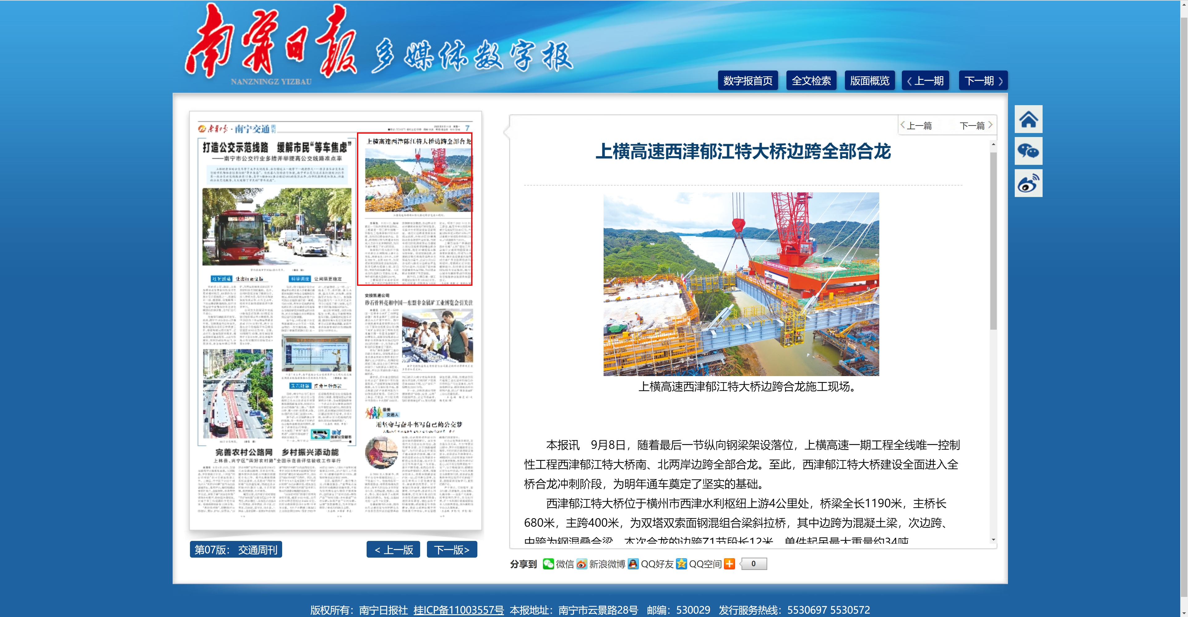 上橫高速西津郁江特大橋邊跨全部合龍